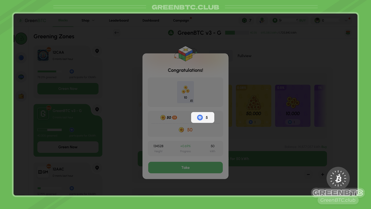 There are different ways to acquire GEMS. Currently, the main sources are from Greening on GreenBTC and from a daily reward pool in the PePe airdrop bot.